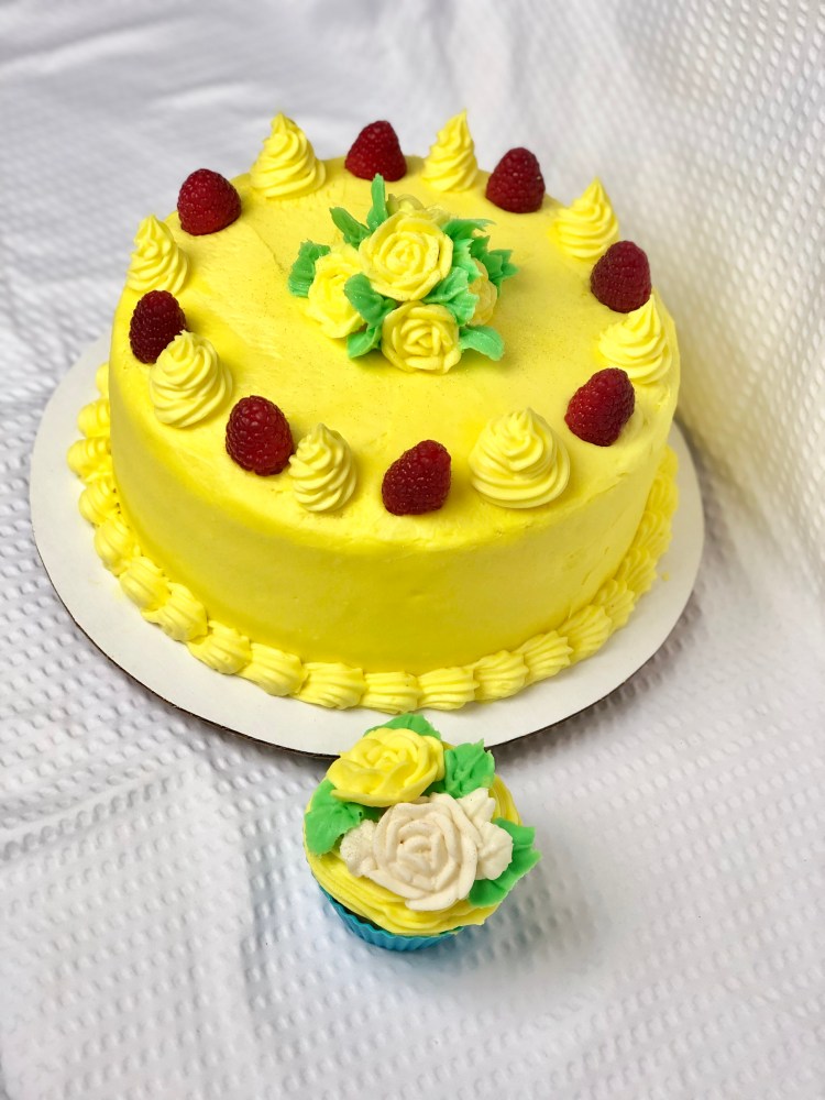 (priced as 8″ round, 3 layer cakes/ 6″ round, 3 layer cake/ dozen cupcakes)