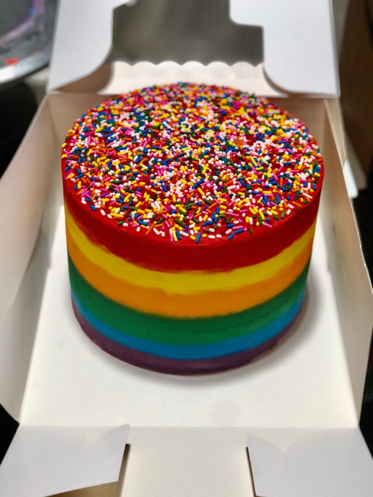Vanilla cake packed with fun sprinkles and your choice of frosting